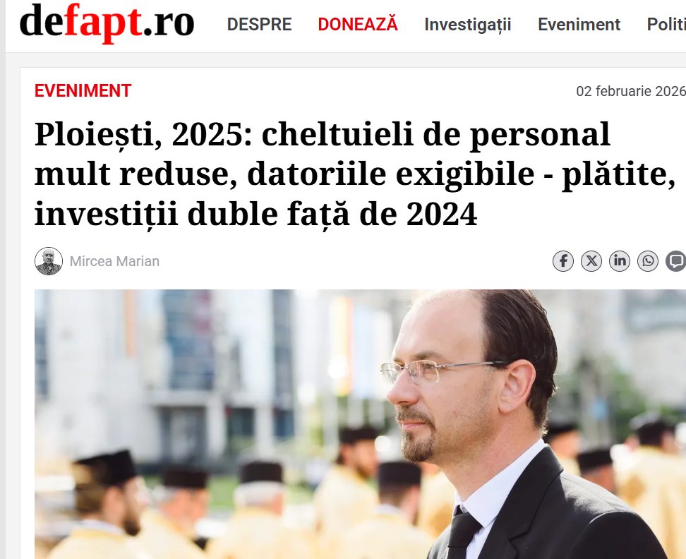 - Gradul de îndatorare a Ploieștiului este extrem de scăzut, ceea ce deschide calea pentru împrumuturi pentru dezvoltare”